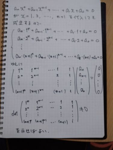 問題再掲です。 以下の問題の解法をいろいろ考えてみようというやつの第3弾です。 問題 $$x^3=a(x-1)^3+b(x-1)^2+c(x-1)+d$$が$x$に関する恒等式となるように定数$a,b,c,d$を求めよ。 さてさて、次の解法に行く前に、ちょっと立ち止まって、 係数比較法に関…